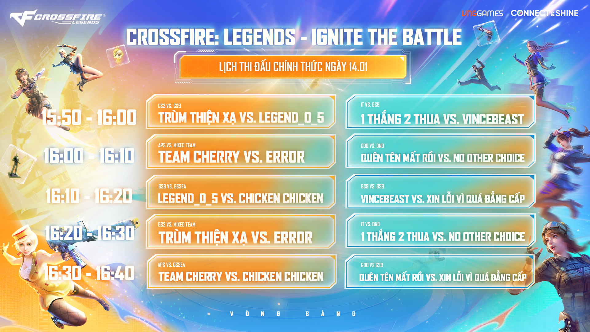 Giải đấu Crossfire: Legends - IGNITE THE BATTLE chuẩn bị bước vào các vòng đấu quan trọng với lịch thi đấu như sau: